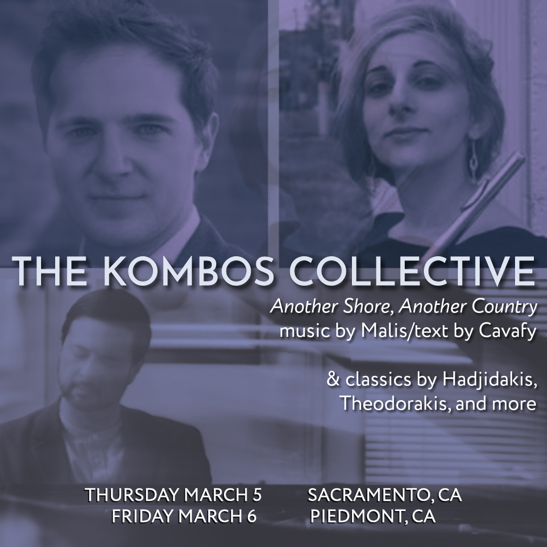 Two performances of my song cycle, Another Shore, Another Country, featuring the poetry of canonic Hellenic diaspora poet C.P. Cavafy. We’ll also play some classics by Manos Hadjidakis, Mikis Theodorakis, and others, in a program we call Out of Place, Out of Time, which looks at diasporic dispositions more broadly.